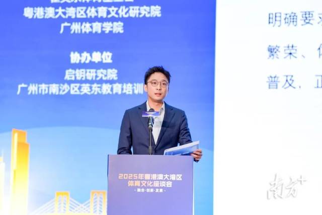 粤港澳大湾区体育文化研究院院长、广州体育学院党委书记米银俊聚焦“粤港澳大湾区体育文化研究的思考”,提出应从文化认同、政策协同、科技赋能等方面入手,探索湾区体育文化的理论体系与实践路径。