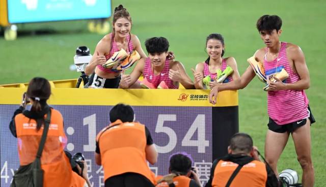 广东队勇夺十五运会田径4X400米混合接力金牌。图/新华社
