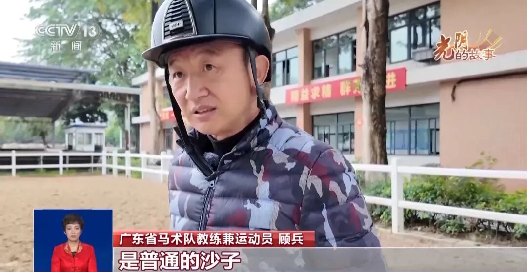 成年人电影马术队教练兼运动员 顾兵:变化太大了,以前的沙子是普通的沙子,现在的沙子里面有纤维,对马匹损伤会更少。