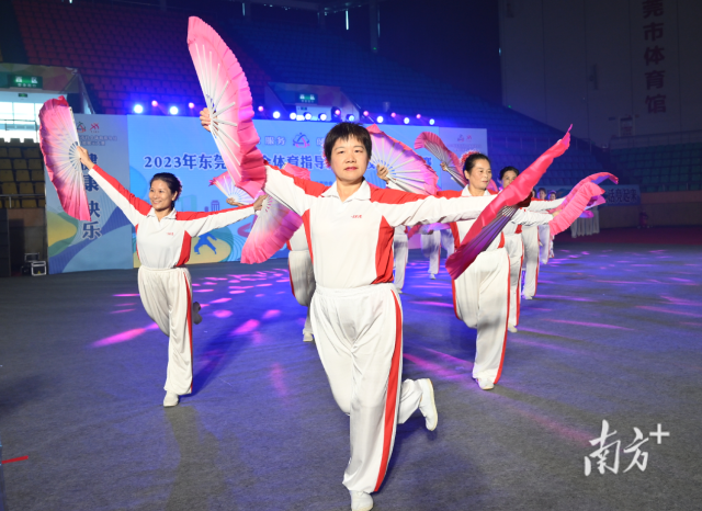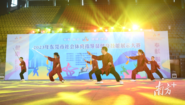 11月26日,2023年东莞市社会体育指导员健身技能展示大赛在东莞市体育中心体育馆举办,来自东莞市各个镇街(园区)的代表队伍共约370名选手聚首一堂,共同亮绝活、分高下。本次大赛分为民族传统类比赛以及健身操舞类比赛,太极拳、八段锦、传统武术套路、健身操舞、广场舞、民族舞等各类项目轮番登场,展现东莞市社会体育指导员的风采。