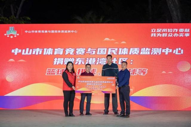 为切实践行“双联双助”各项工作,推动和改善东港湾社区体育基础设施建设,市体育竞赛与国民体质监测中心党支部、市体育彩票管理中心党支部还分别向东港湾社区捐赠了体育器材及器材维修经费。现场还设置了互动问答和互动游戏环节,群众通过游戏了解科学健身知识,赢取小礼品;石岐街道郑二小学和街坊社团为现场观众带来了精彩的助兴表演,充分展示了社区群众健康、阳光、乐观、和谐的精神风貌。