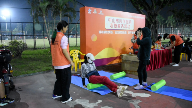 另外,中山市体育竞赛与国民体质监测中心组织由运动康复和体能训练专业人员组成的志愿服务队,在东港湾体育公园开展了科学健身志愿服务,向热爱运动的市民讲解了科学的运动热身方式和拉伸放松方法,还讲解了运动损伤的各种预防手段、防护贴扎等运动防护知识,促使群众能养成崇尚健身、追求健康文明的生活方式,传播科学健身理念,增强广大市民群众的获得感和幸福感。