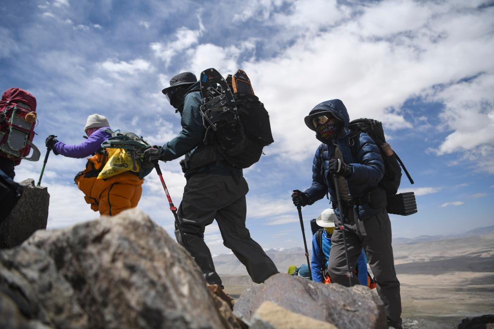 资料图:一支登山队在进行拉练。新华社记者 胡虎虎 摄