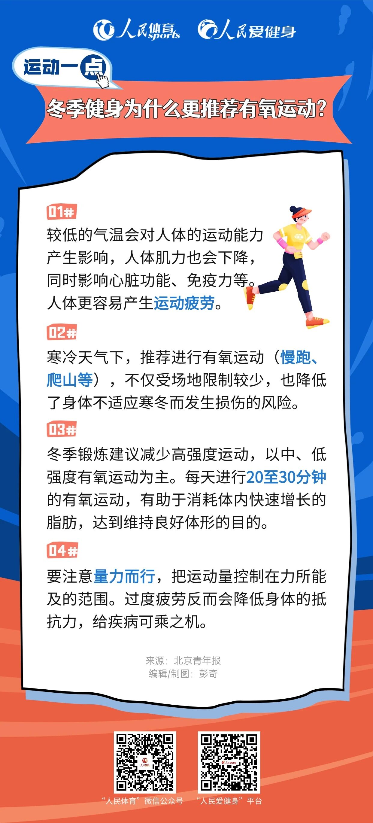 在寒冷天气下进行有氧运动,不仅受场地的限制较少,也降低了身体不适应寒冬而发生损伤的风险。