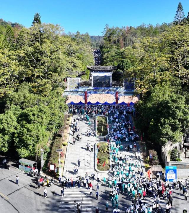 随着发令声响,参与人员从阳山县人民广场出发,途经贤令山牌坊、烈士纪念碑、摩崖石刻,最终抵达北山古寺终点处。这条精心设置的登山徒步线路不仅是一条健身之路,更是一条串联阳山自然与人文之美的“景观长廊”。路线巧妙串联贤令山上的各核心节点,既深度融合了阳山得天独厚的生态资源与源远流长的韩愈文化,让参与者在穿行层林叠翠间,沉浸式饱览苍松翠柏、溪谷清幽的山林胜景;更能在步步皆景、处处含韵的行程中,触摸历史遗存的斑驳肌理,聆听韩愈治邑的千古佳话,感受自然灵秀与人文厚重的深度交融,于登山途中读懂阳山的人文底蕴与精神内核。