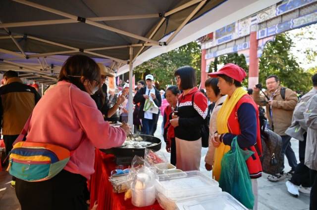 贤令山登山活动现场,阳山精心打造文化市集、非遗展示区等多元特色区域,成为活动现场的亮眼风景线,吸引了大批市民群众与登山徒步爱好者驻足体验、互动打卡。在特色美食体验区,七拱豆腐润、传统炸糍粑、小江牛杂等极具阳山地域特色的风味美食悉数亮相,现场设置免费试吃环节,让游客在登山途中感受运动激情与自然野趣的同时,一站式品味阳山舌尖风味、领略本土饮食文化魅力。