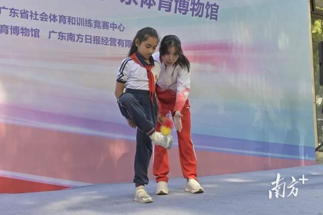 分享过后,冠军小课堂在博物馆门口开讲。潘俏山带领同学们练习太极拳的基础动作,一招一式尽显沉稳韵味;何宇聪和团队示范了南狮的经典姿态,赢得围观群众阵阵喝彩;黎文涛等毽球冠军现场传授盘踢、磕踢等基础技巧,同学们跃跃欲试,在轻松愉快的氛围中感受运动乐趣。