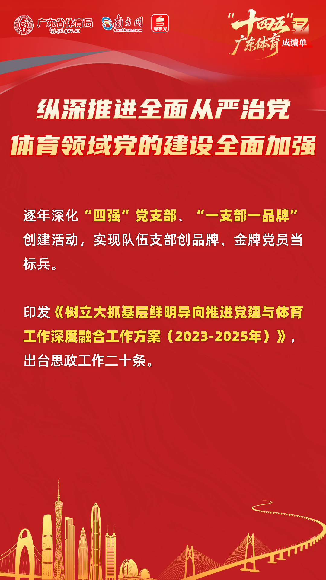 “十四五”以来,广东体育强省建设从夯基垒台到积厚成势,各项体育事业加力提速、纵深推进,展现新气象。