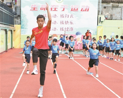 亚洲少年田径锦标赛百米冠军吴昊霖为同学们上课