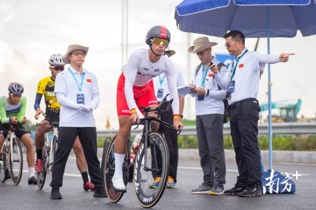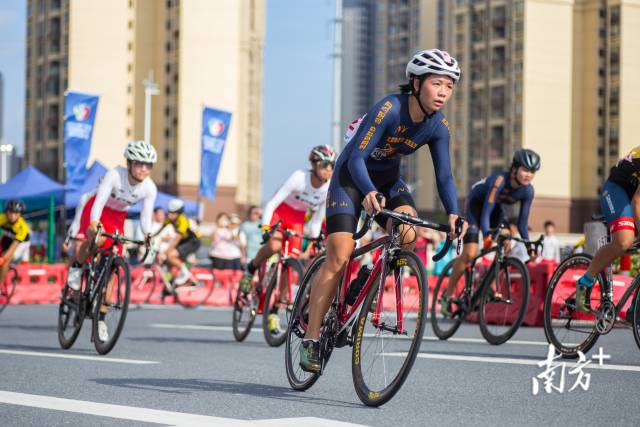 鸣笛一响,选手们一触即发。在恩平市发展大道宽敞的赛道中,“骑士们”风驰电掣,破风前行,势要一鼓作气,勇夺头彩。每当选手经过,领队、教练都会在旁大声呼喊,就连志愿者都忍不住为场上的选手们加油助威。