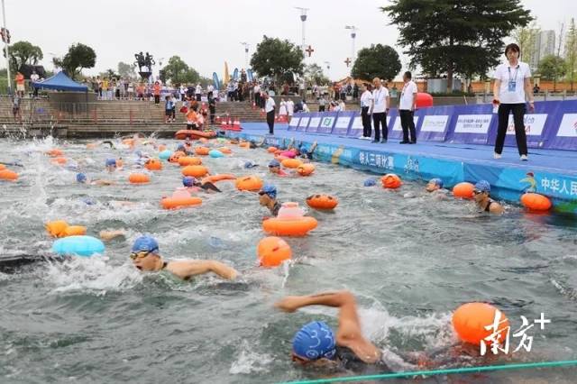 清晨7点,200余名全程分龄组选手率先集结在南水河畔。随着一声发令枪响,选手们分批次出发,跃入清澈见底的河水中,沿着南水河逆流而上完成1.5公里的游泳赛段。