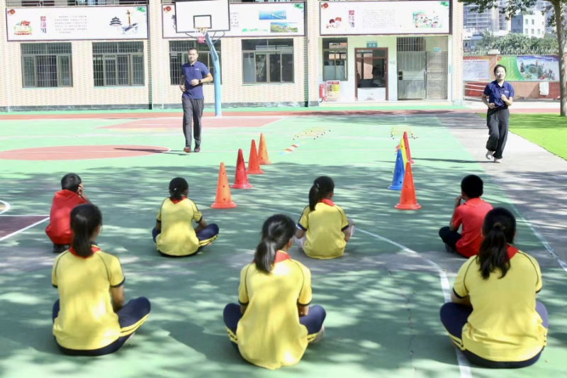 吴宗泰和李承享为参加体适能游戏的学生加油
