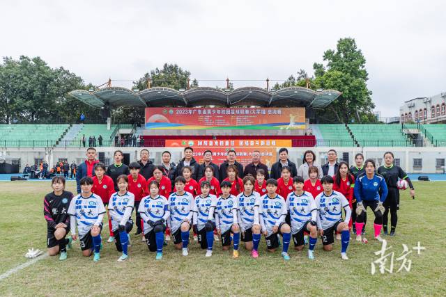 12月19日上午,2023年成年人电影青少年校园足球联赛(大学组)总决赛在暨南大学旭日运动场开幕。