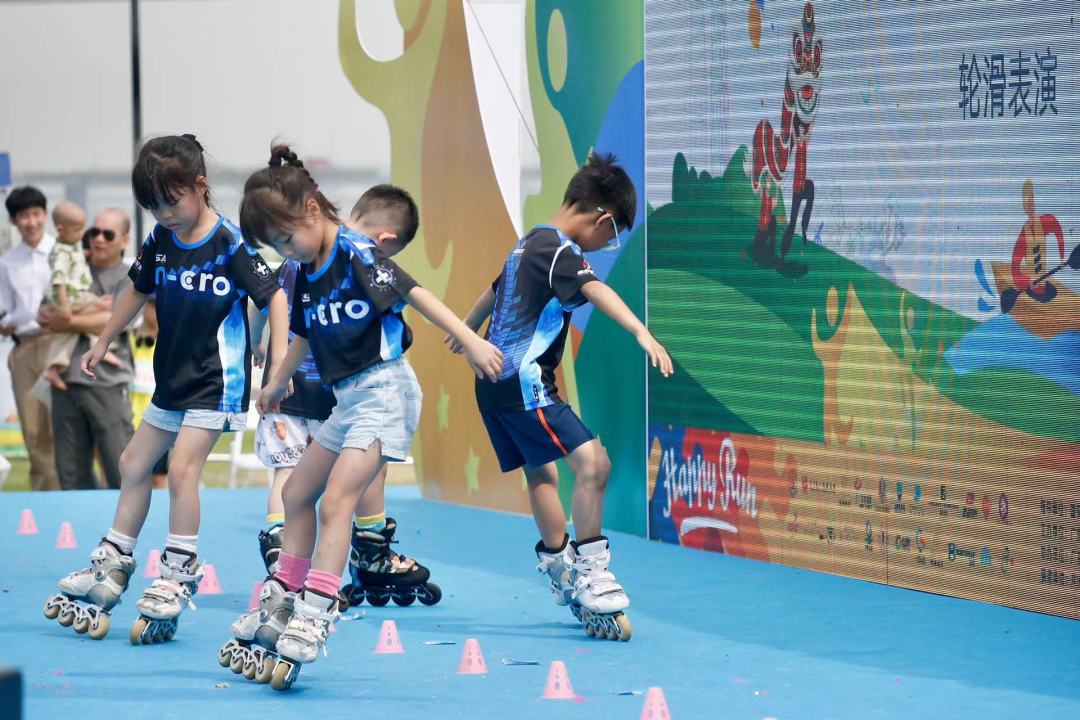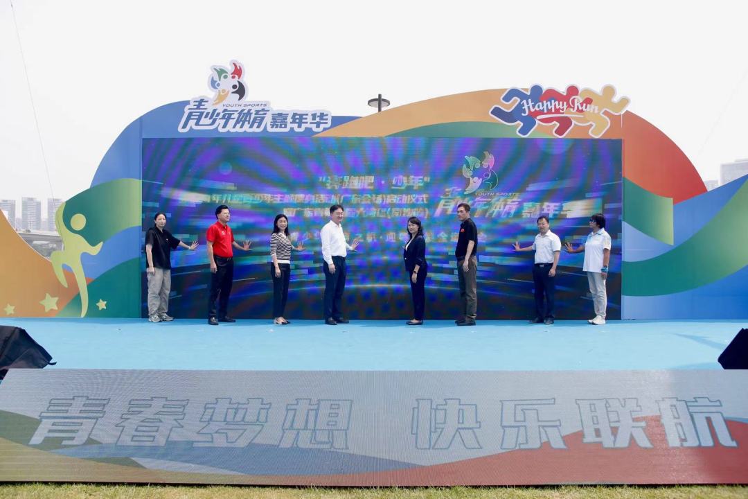 5月18日,“奔跑吧·少年”2024年儿童青少年主题健身活动(广东会场)启动仪式暨成年人电影第八届大湾区青少年体育嘉年华在广州市南沙区明珠湾灵山岛水舞广场举行。奥运冠军杨维、罗玉通亲临现场,与广大青少年朋友共赴一场体育+科技赋能+非遗文化+旅游美食的盛会。