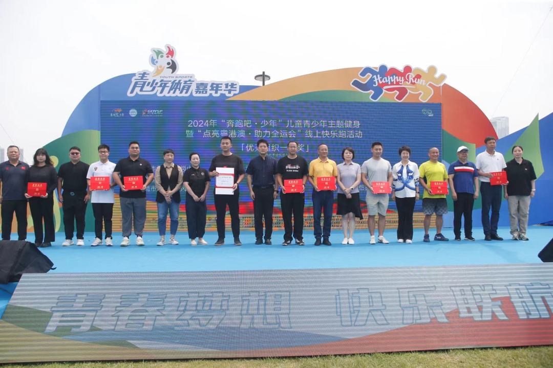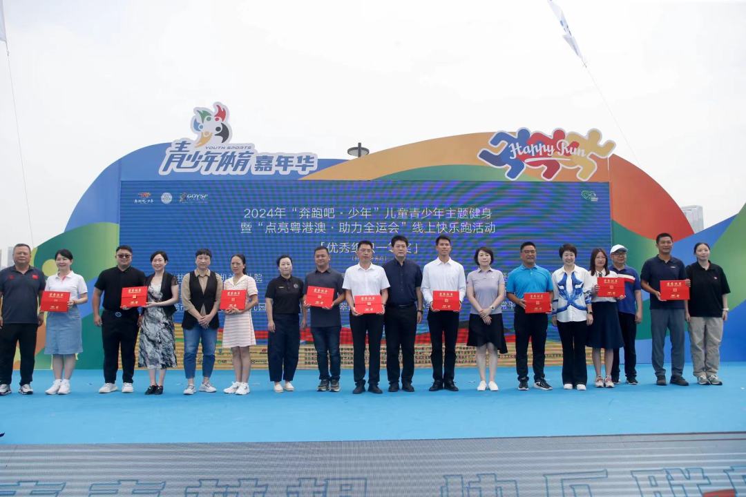 在精彩纷呈的水陆体育项目表演交相辉映之下,2024年“奔跑吧·少年”儿童青少年主题健身活动(广东会场)正式启动,同时发布含超过240项内容的成年人电影2024年“奔跑吧·少年”儿童青少年主题健身活动计划,并为获得2024年“奔跑吧·少年”儿童青少年主题健身暨“点亮粤港澳·助力全运会”线上快乐跑活动优秀组织一等奖单位颁奖。