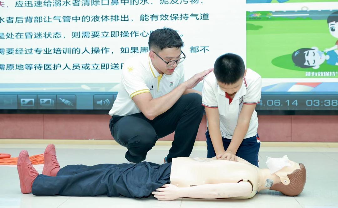 活动现场,学生们首先观看了防溺水宣传片。在生动的视频讲述中,大家对防溺水知识有了直观的感受和理解。随后,宣讲团分工明确,讲解、演示、问答、解惑,逐一深入,带着学生们深入掌握防溺水知识,从安全教育到应急处置再到水上自救技能,一点一点让学生深刻理解进行游泳运动的所必须掌握的安全知识,并引导学生养成在安全水域、在有看护的水域场所进行游泳运动的意识,坚决做到“六不准”。