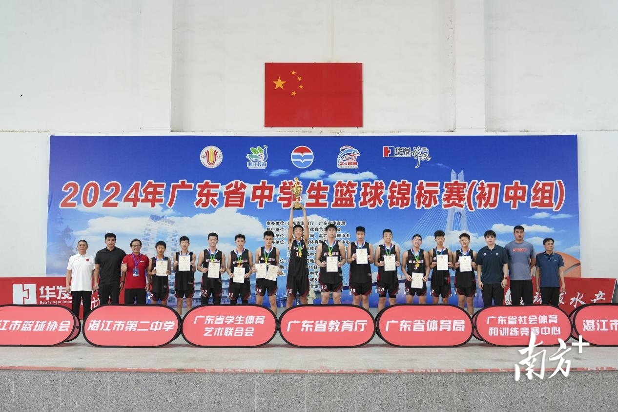 7月24日,历经10天2个赛段的激烈角逐,2024年成年人电影中学生篮球锦标赛(初中组)在湛江落下帷幕。凭借精湛的球技和完美的配合,广东实验中学荔湾学校最终获得男子组冠军,深圳市第二实验学校队获得女子组冠军。