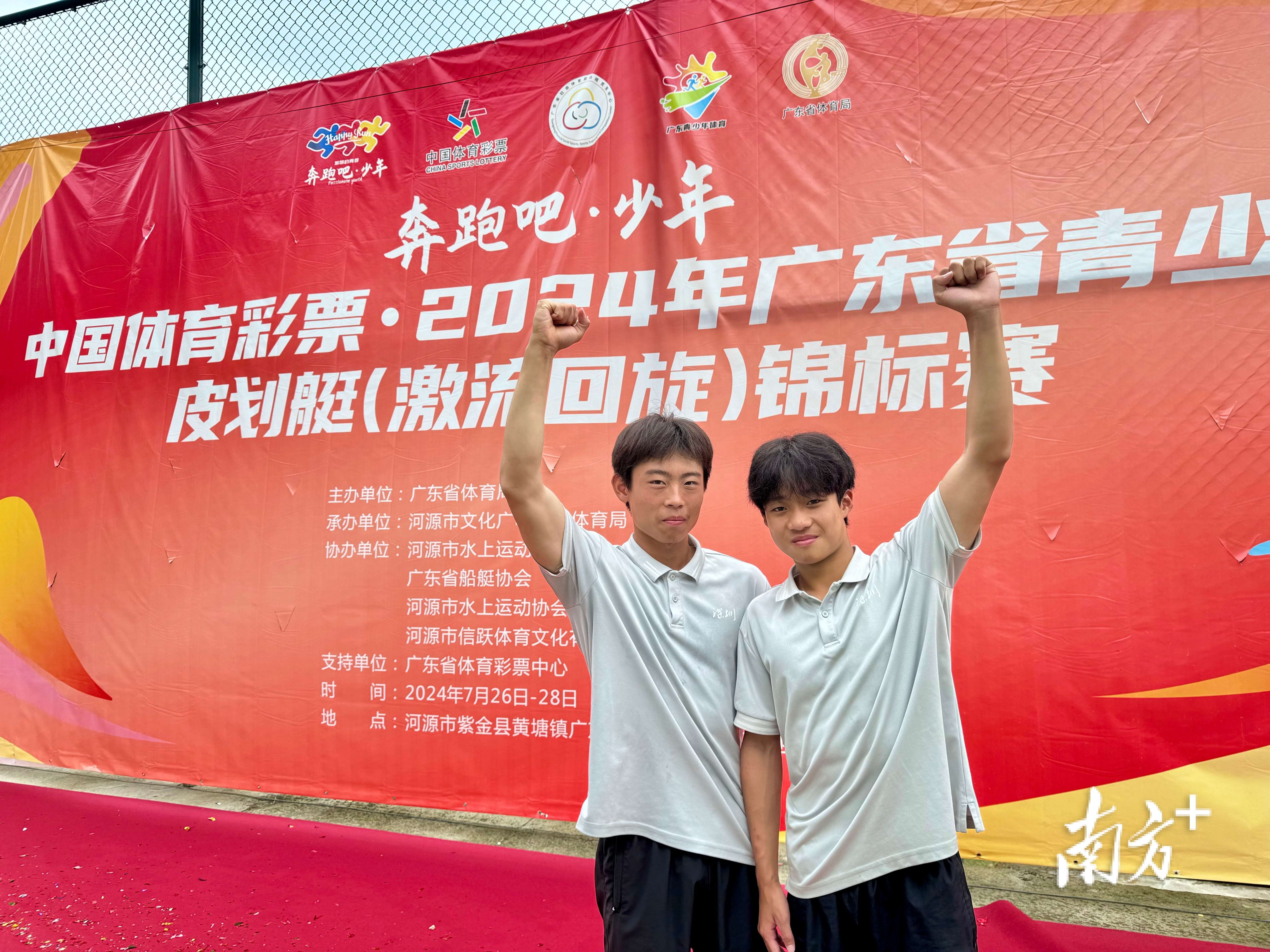 “感觉很激动,今天比赛发挥得很好,我们配合得也特别默契,今天的成绩来自于我们每天刻苦的训练。”来自深圳市代表队的唐晖、曾品锟、张耀辉获得甲组男子团体皮艇(MK1甲)冠军,他们今年15岁,学习皮划艇已有3年,为了今天这场比赛,已经备赛了1年,目前在为省运会做准备。问及对未来的期许,他们不假思索地说:“为国争光!”