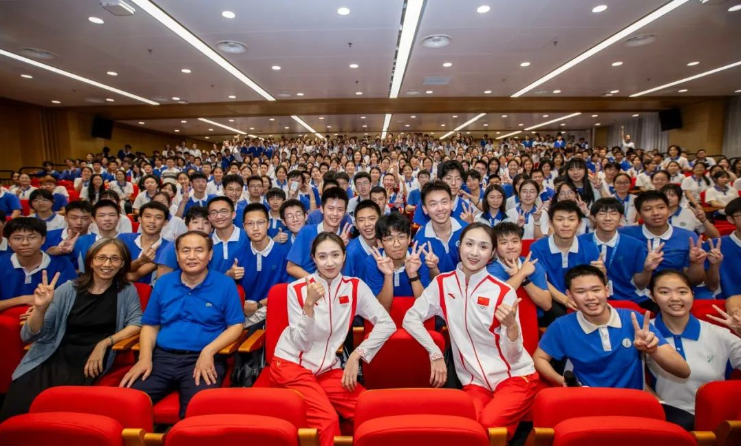 9月11日下午,深圳中学成德楼学术报告厅座无虚席,巴黎奥运会花样游泳双人和集体项目冠军王柳懿、王芊懿来到这里,与师生近距离分享她们的冠军之路和拼搏故事。