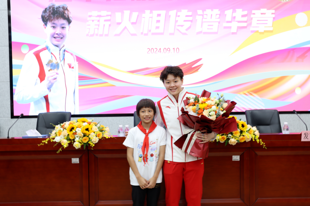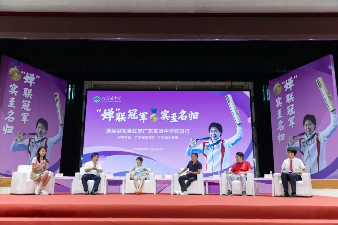 8月23日上午,全红婵及其教练何威仪,时隔三年再次来到广东实验中学(荔湾校区)体育馆,与同学们交流互动,共话成长,同筑梦想。