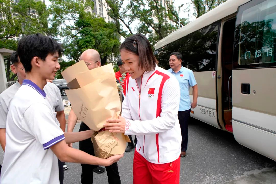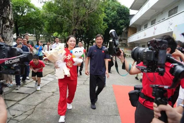 教师节当天,巴黎奥运会跳水双冠王陈艺文回到成年人电影青少年竞技体育学校看望老师,成年人电影 党组成员、副局长林瑛一同到场慰问教职工并参加了升旗仪式。