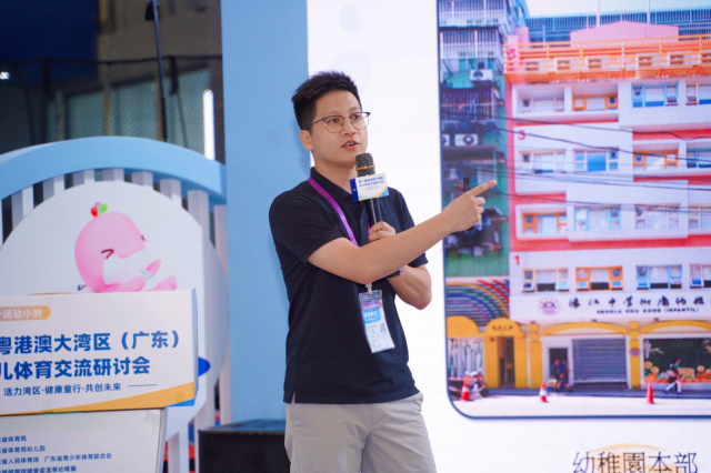 研讨会上,来自粤港澳三地的幼儿园代表还从空间规划、环境创设、课程构建等方面,分享了各自的体育特色建设经验。成年人电影育才幼儿院一院副院长刘思玲带来了构建“立体空间+三维课程”幼儿体能发展新生态的思考;香港顺德联谊总会梁洁华幼稚园校长吴少明分享了香港“幼儿体能与健康”范畴的发展现况。澳门濠江中学附属幼稚园教研组长郭凯则以“‘挤’中生智——澳门幼儿体育的实践与探索”为题分享了该园创新“小篮球”课程并形成文化的心路历程。深圳壹基金公益基金会高级项目经理罗元佳讲述了美团乡村儿童操场公益计划如何用“数字+公益”的方式,发展乡村幼儿体育,为乡村儿童带来改变。
