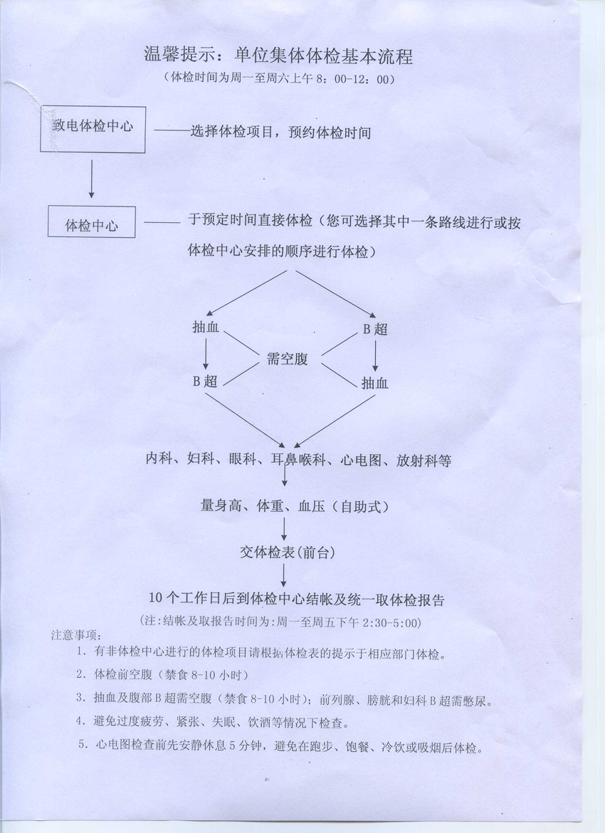 中医院二沙岛分院集体体检基本流程及注意事项