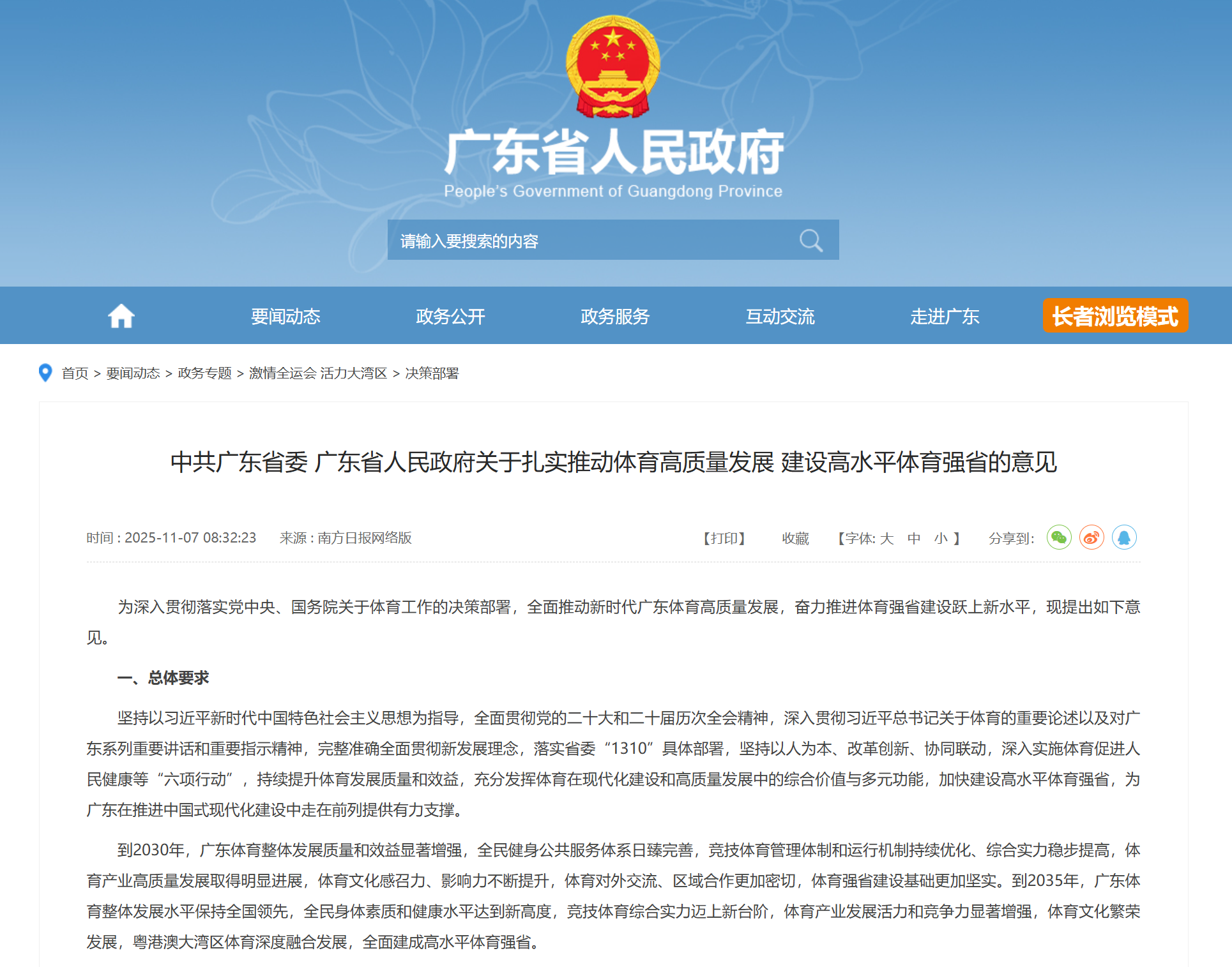 省委、省政府出台《关于扎实推动体育高质量发展 建设高水平体育强省的意见》。