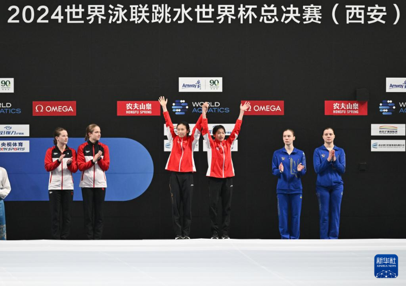 4月19日,2024世界泳联跳水世界杯总决赛在西安开赛。在女子双人10米台决赛中,广东运动员全红婵与搭档陈芋汐率先亮相。她们在比赛中发挥出色,5轮动作成绩均排名第一,最终以总分364.86分、领先第二名加拿大组合超60分的优势摘金,为中国队赢得开门红。