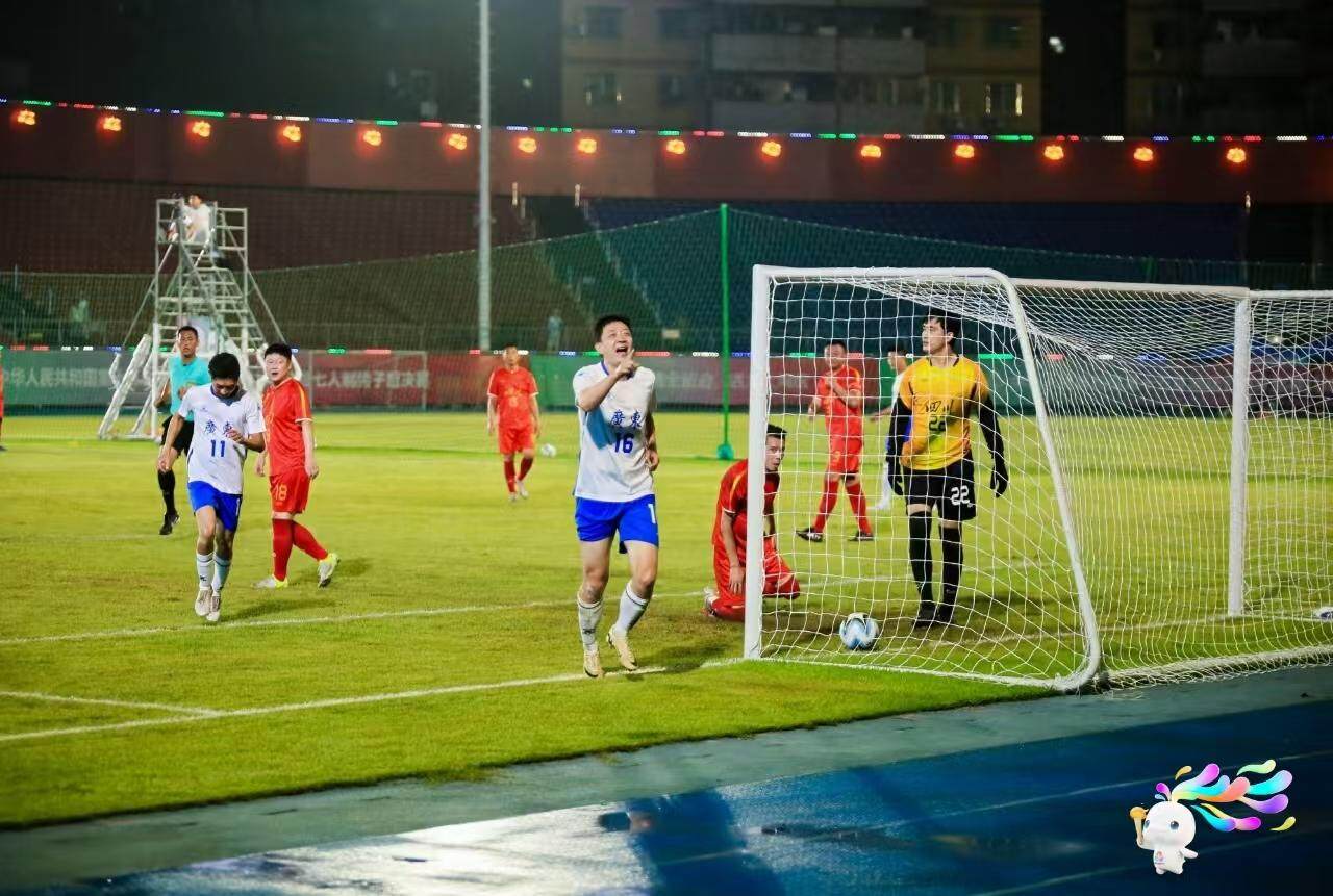 点球大战中,广东队顶住压力,5轮罚球弹无虚发,以5比4力压新疆生产建设兵团代表队,以总比分6比5战胜对手夺得甲组冠军,这也是十五运会群众七人足球赛首枚金牌。