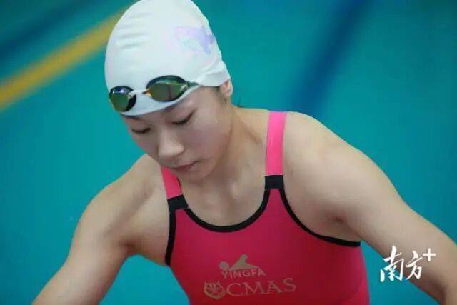 后来,教练让她去游泳队“试一试”,她以为是普通游泳,便懵懂地前往。直到来到了国家体育总局湛江潜水运动学校的训练馆,看见师兄师姐们脚踩巨大的脚蹼在水中飞驰,她才第一次知道“蹼泳”这个项目。