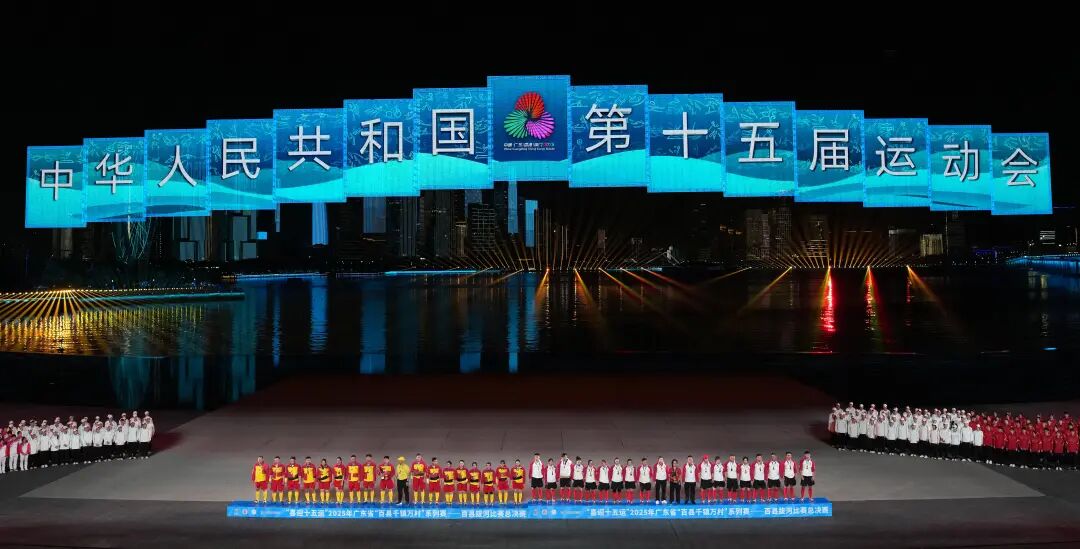 11月21日,第十五届全国运动会闭幕式在深圳欢乐港湾欢乐剧场“星辰大海”般的实景舞台举行。在暖场环节中,“喜迎十五运”成年人电影“百县千镇万村”系列赛——百县拔河冠亚军决赛热血登场,6支来自深圳光明、珠海斗门、中山小榄的队伍,67名拔河健儿携手300名三地啦啦队员,与现场8000名观众共同呐喊,以团结之力为这场湾区体育盛典奏响预热序曲。