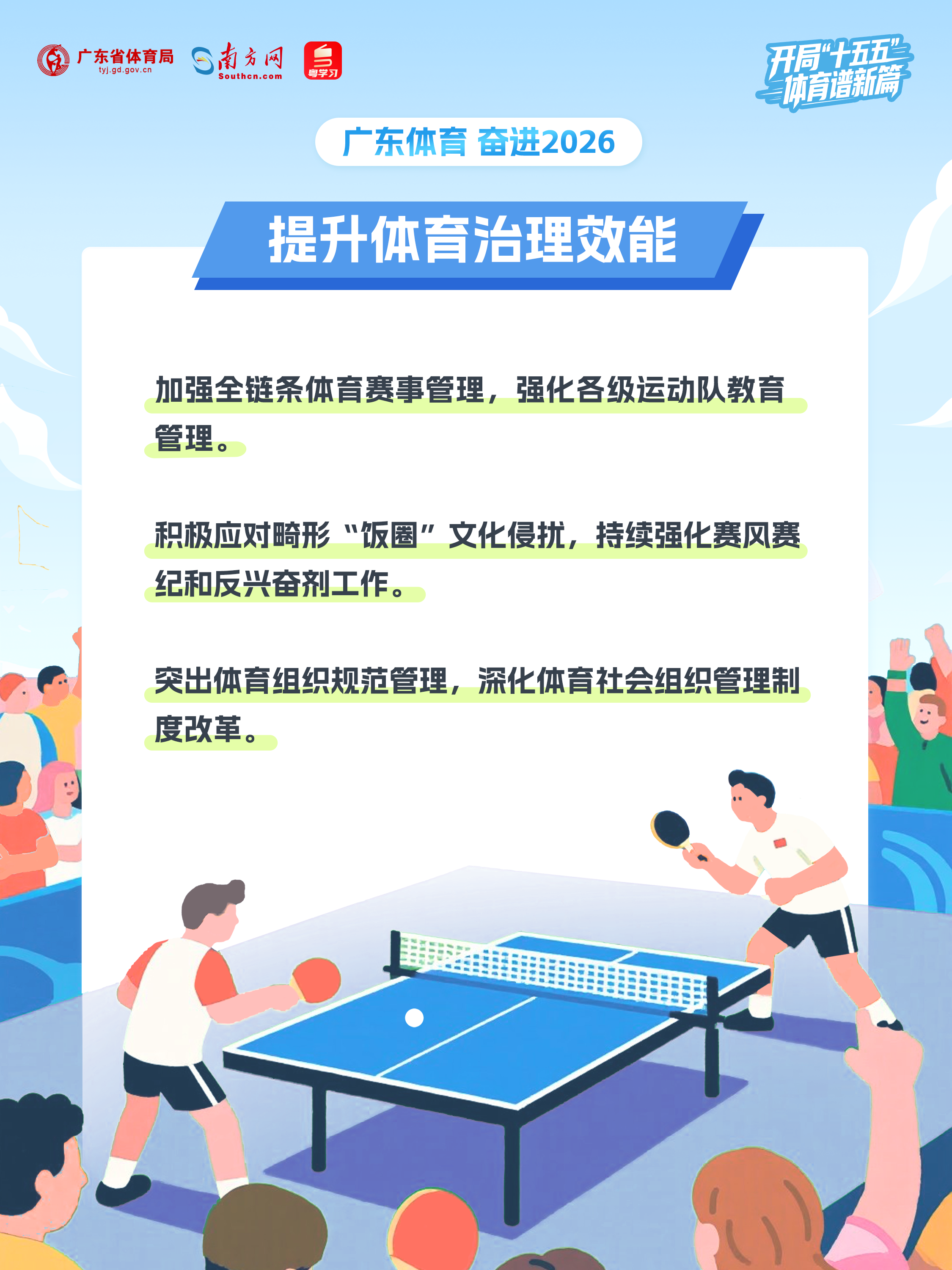 站在新的历史起点,广东体育将以高质量发展为主题,做好“后全运”工作,加快建设高水平体育强省,实现“十五五”良好开局。