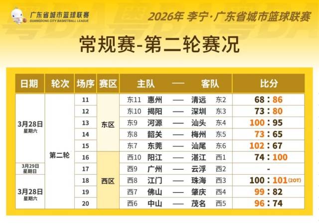3月29日19:30,粤BA常规赛第二轮最后一场比赛将精彩上演,广州队主场迎战云浮队,广东篮球-粤BA视频号、抖音号,广东发布以及各地市官方发布,咪咕视频等平台将进行直播,精彩不容错过。