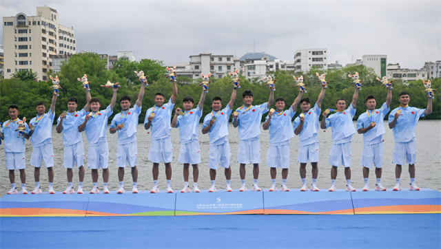 此次中国男队以广东佛山顺德乐从罗浮宫龙舟队为班底,曾获众多国家级、国际级赛事冠军。中国队教练冯国敬赛前曾表示,他是第一次参加亚沙会,目标是带领队伍站上最高领奖台,实现中国男队在亚沙会龙舟比赛金牌“零”突破。如今,这一目标已实现。