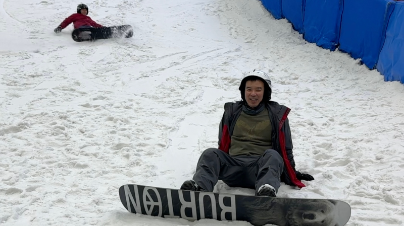 欧阳明威,来自香港的滑雪初学者。北京冬奥会时在电视机前看了很多场比赛,以前从未接触过冰雪,都不知道比赛比得是什么,可就是一看就舍不得离开。终于有机会能全副武装走进一片雪白的滑雪场,脚下走得踉踉跄跄,稍不注意就失去平衡。狠狠地摔倒在地上,明明很疼,欧阳明威却坐在雪地上笑得比谁都大声。