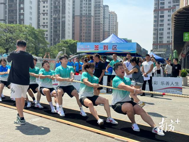 潮州鼓槌闻讯起,醒狮翻腾舞祥瑞,伴随着醒狮队点燃现场的氛围,时间很快来到上午9时30分,随着一声清脆的哨响,比赛正式拉开帷幕,只见赛场两边的队员们身体下沉,双脚紧扣地面,双手紧紧攥住粗壮的麻绳,手臂的青筋因用力而绷起。队伍前排的队员咬紧牙关,汗珠顺着脸颊滑落;而压阵的“锚人”身体后仰、腰带紧扣绳索,宛如定海神针般稳固。观众的助威声此起彼伏,呐喊声、加油声汇聚成一股巨大的声浪,将现场气氛推向高潮。