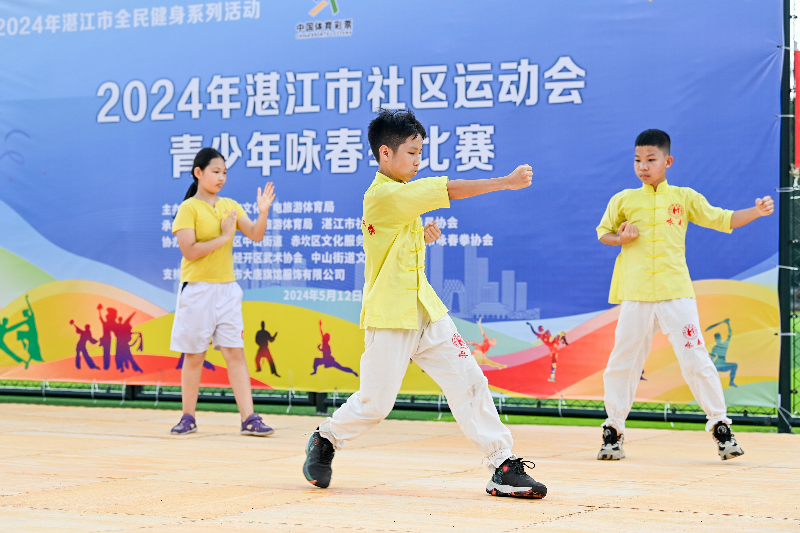 湛江市社区运动会青少年咏春拳比赛于5月12日在赤坎体育场举行。