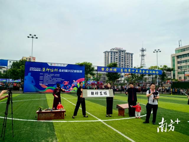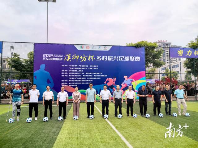 5月18日,2024五华县横陂镇乡村振兴足球联赛在梅州市五华县横陂镇球王公园开幕。受邀参赛的球队将以球会友,共同为乡村振兴和“百千万工程”贡献力量。