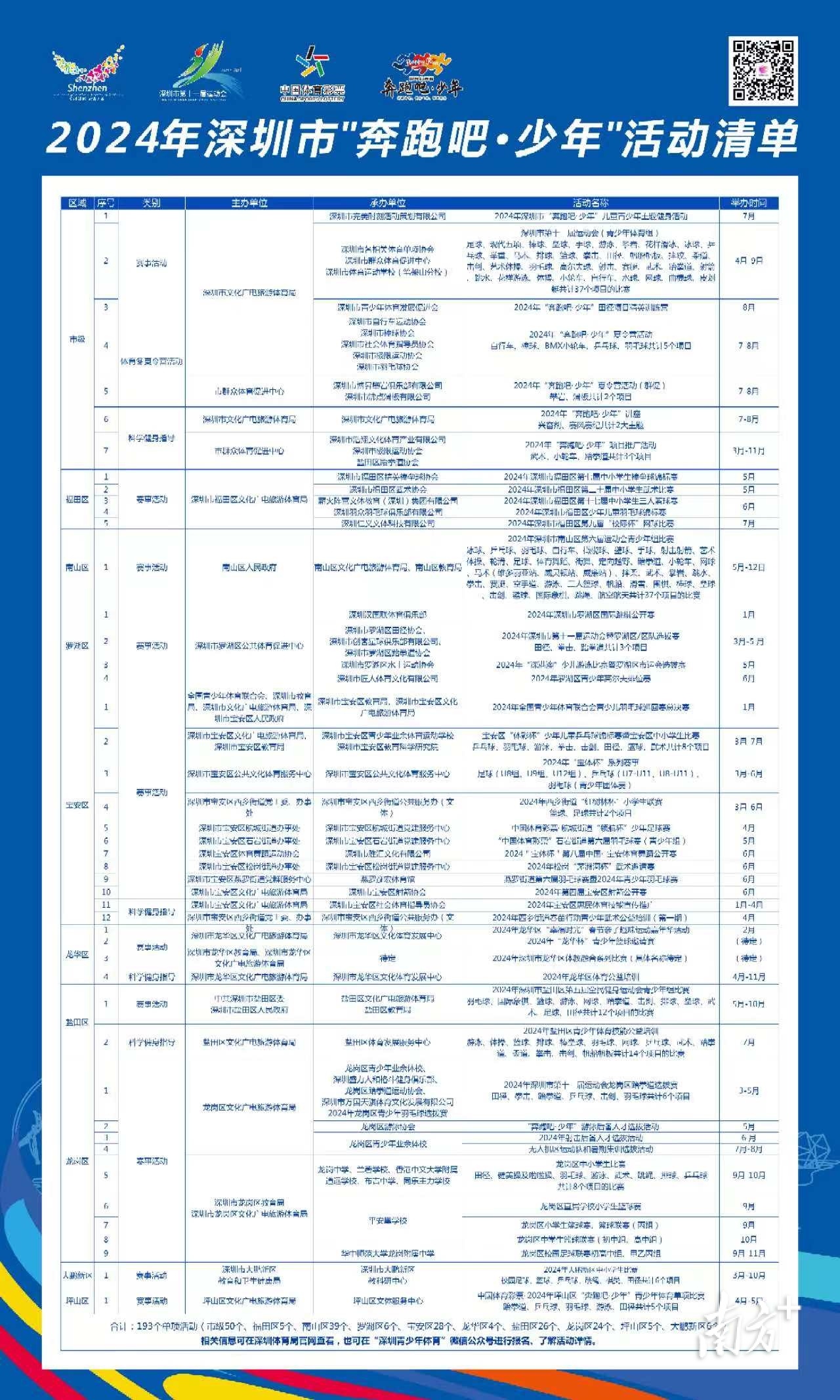 7月16日,2024年深圳市“奔跑吧·少年”儿童青少年主题健身活动启动仪式在深圳宝安体育中心足球场举行。本届活动设有体育赛事、体育冬夏令营、科学健身指导共计3个类别,约200项次活动,将为深圳青少年带来一场充满活力与激情的体育盛宴。
