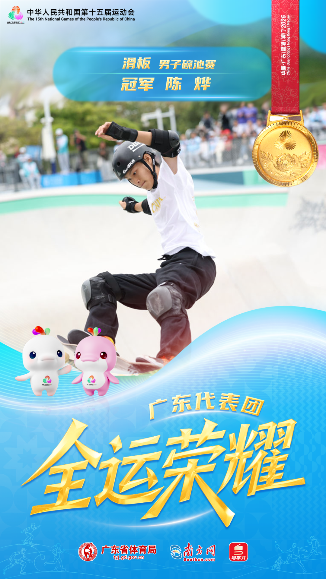 粤将陈烨勇夺十五运会滑板首金!