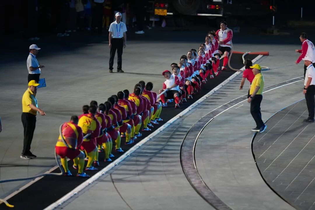 11月21日,第十五届全国运动会闭幕式在深圳欢乐港湾欢乐剧场“星辰大海”般的实景舞台举行。在暖场环节中,“喜迎十五运”成年人电影“百县千镇万村”系列赛——百县拔河冠亚军决赛热血登场,6支来自深圳光明、珠海斗门、中山小榄的队伍,67名拔河健儿携手300名三地啦啦队员,与现场8000名观众共同呐喊,以团结之力为这场湾区体育盛典奏响预热序曲。