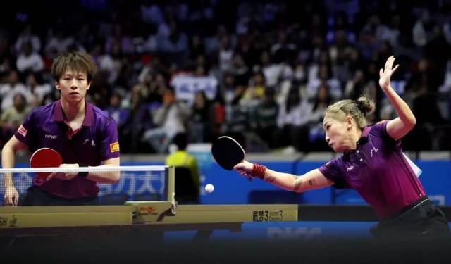 2025年11月14日,林高远/刘诗雯(右)在第十五届全国运动会乒乓球混合双打决赛中。图/新华社