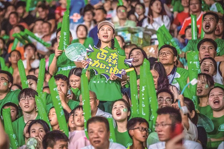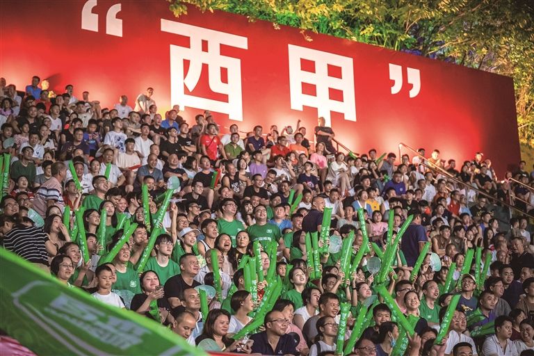 8月13日晚,“健力宝杯”第十七届佛山“西甲”足球联赛进入第5个比赛日,可容纳万人的云秀山体育场几乎座无虚席。比赛中,场上每次流畅的进攻、精彩的进球,都会引发万名观众山呼海啸般的欢呼喝彩声。中场休息间隙,万人合唱经典歌曲《光辉岁月》,看球现场秒变演唱会,氛围感瞬间拉满。