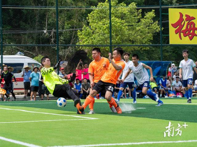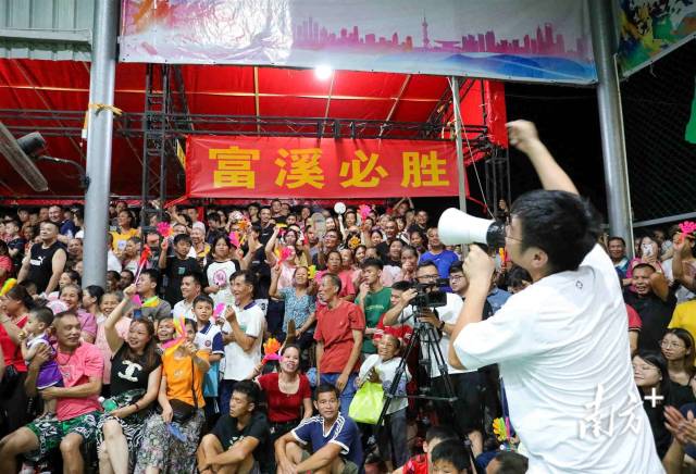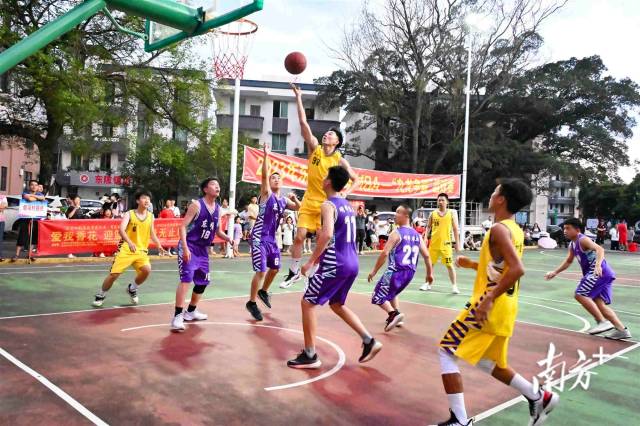 这样的场景也在广东多地上演,火热程度丝毫不输专业赛事:在肇庆四会市大沙镇,“村BA”冠军争夺战在岗美村和富溪村之间上演,2000余名到场观众把球场挤得水泄不通;在“球王”李惠堂故乡梅州横陂镇,“乡村振兴杯”足球赛今年已是第二届,由章联村足球队对阵杨恩村足球队的梅州“村超”揭幕战,在网络上的直播登上了央视新闻客户端,在南方+客户端的流量超过10万;在茂名电白区林头镇,第四届会员杯篮球赛决赛不久前在林头人民公园灯光篮球场打响,这个被当地人称为“LT(林头)BA”的联赛,每晚都有一两千名村民观赛……