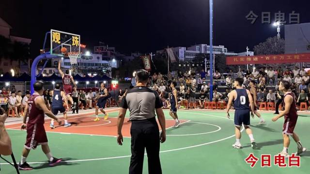 9月19日晚,2023茂名“墟BA”男子篮球联赛小组赛A组对决,在电白区观珠镇沉香广场精彩上演。