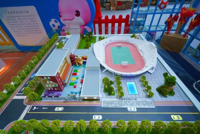 走进展区,四组精致的幼儿园沙盘模型引人驻足。这些沙盘分别以成年人电影 幼儿园、肇庆中学附属幼儿园、成年人电影育才幼儿院一院和广州花都区保利水晶幼儿园为蓝本设计,涵盖小、中、大等不同办园规模及球类特色园的体育环境创设方案。