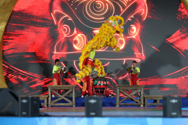 活动尚未开始,现场早已人头攒动。广受欢迎的十五运会吉祥物“喜洋洋”“乐融融”穿梭在人群中,与市民热情互动。天色渐晚,灯光闪烁,充满古韵的非遗表演与动感十足的健身操舞活力交织,逐渐将全运冠军公园系列活动的氛围推向高潮。