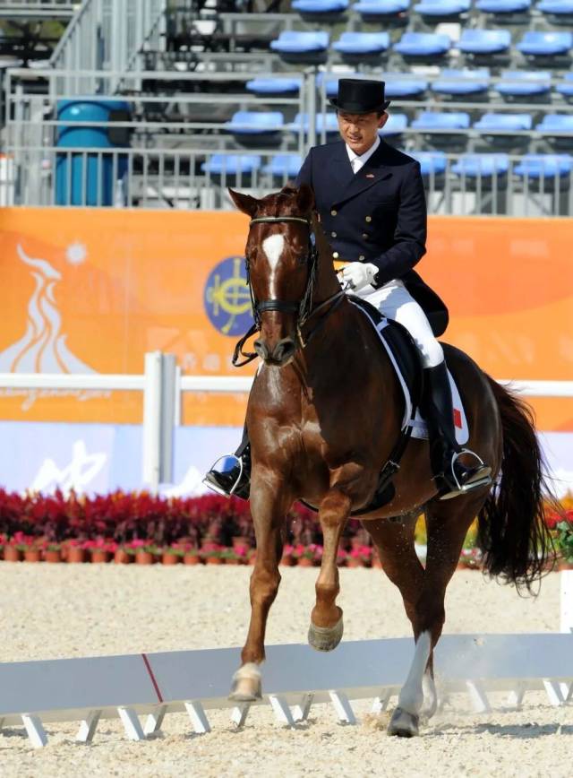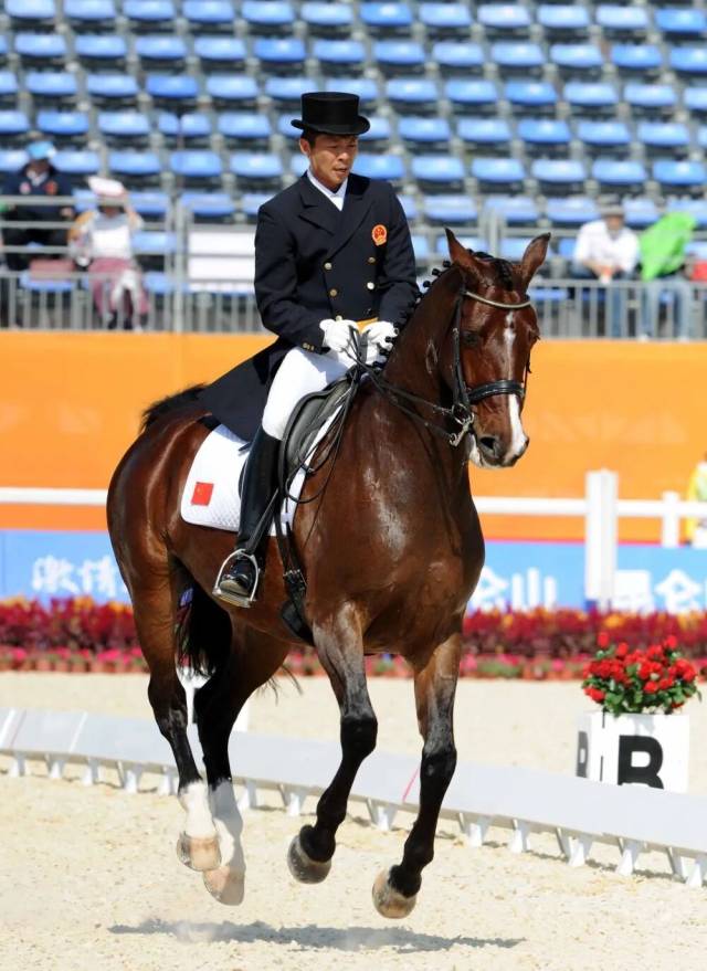 2010年11月14日,中国队选手顾兵在第16届亚运会马术盛装舞步团体比赛中。图/新华社