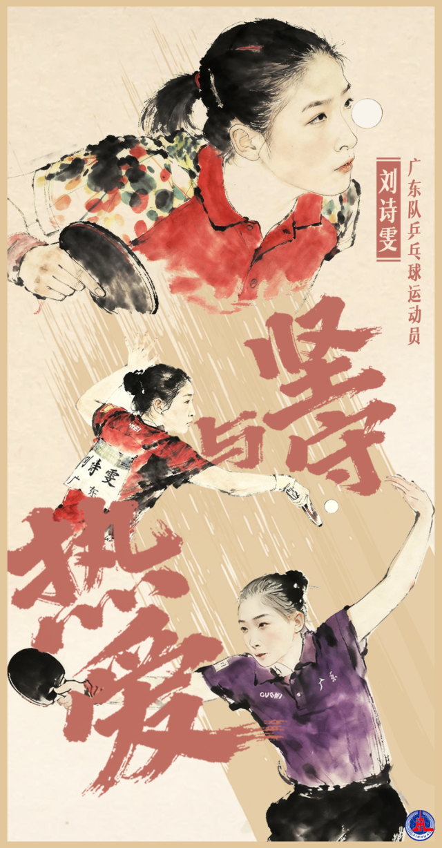2009年9月30日,广东队选手刘诗雯在比赛中。当日,在山东青岛举行的第十一届全运会乒乓球女子单打第三轮比赛中,刘诗雯以4比0战胜山东队选手曹臻,晋级下一轮。图/新华社